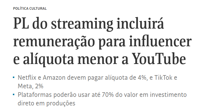 A finalidade é controlar e taxar ainda mais o mercado de streaming no Brasil