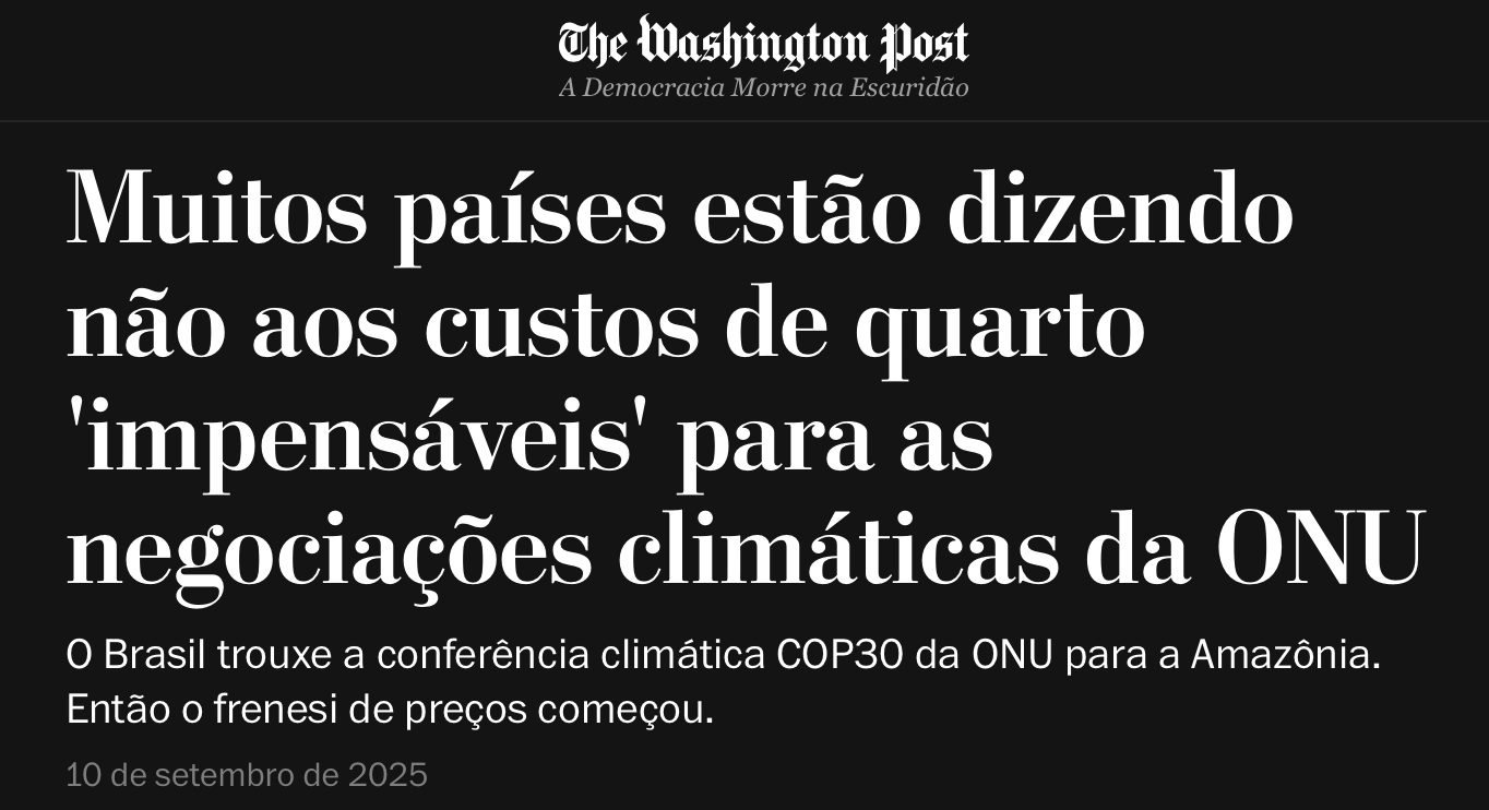 A COP30, em Belém, começou sem a presença de vários dos principais líderes mundiais, fato que a torna inócua. China, Índia e Rússia, as parceiras de Brics enviaram apenas representantes burocráticos. Trump fez piada.
