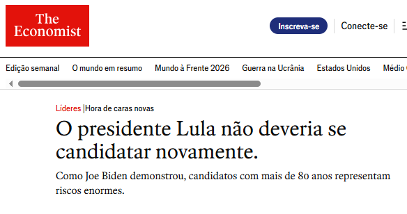 A The Economist teme o declínio cognitivo de Lula, como se a falta de juízo fosse um problema da idade e não um plano de governo