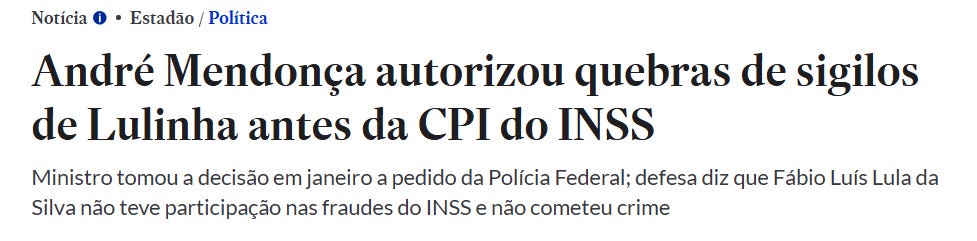 Bem, segundo a imprensa, André Mendonça fez primeiro… e nem ganhou um socão petista na cara. É um suprêmico e sabe o que faz. Tanto que ele decidiu que os irmãos do nosso amado José Antonio não precisam comparecer na CPI do crime organizado. Fez o milagre da transformação da convocação em convite. O pau que dá no amigo, não dá no amigo do amigo.