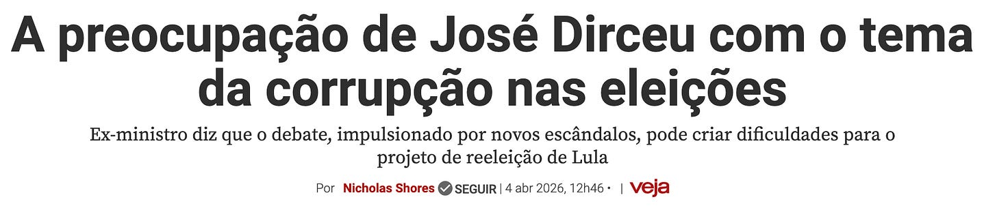 A preocupação de Dirceu não é com o dinheiro roubado dos aposentados do INSS e nem com as patifarias privês de Vorcaro.