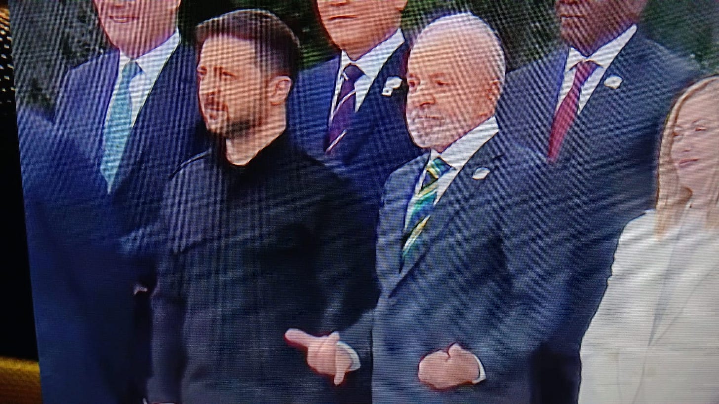 Qual idioma ele sai falando com os outros ? Curiosa, já que nem o português ele domina. E a Meloni se distancia dele assim que pode ...