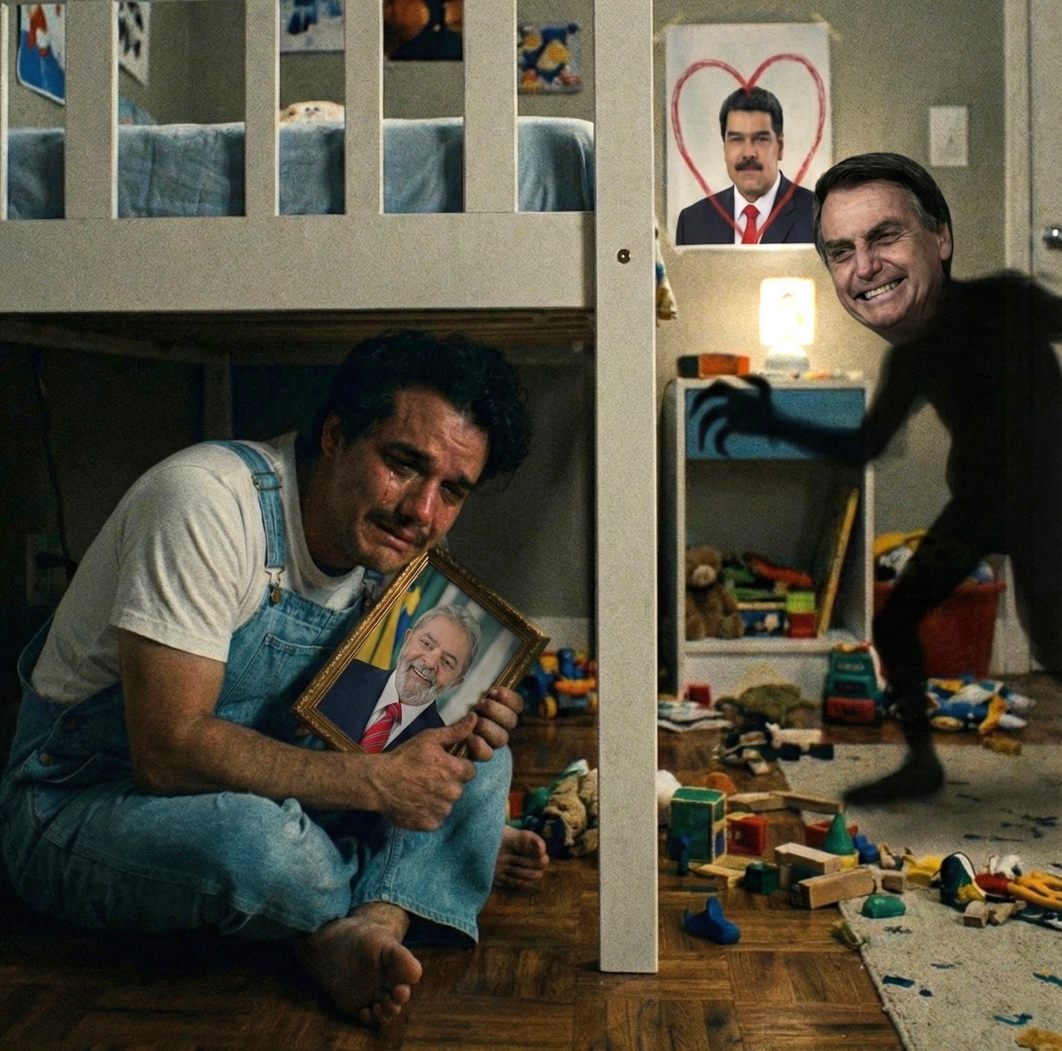 Isso não é militância, é desconexão total da realidade. Essa gente vive numa bolha onde usam o Bicho-Papão para assustar as crianças na sala para que elas se comportem, enquanto, no quarto ao lado, o tio “bonzinho”, em paz, abusa do sobrinho durante o almoço de família.