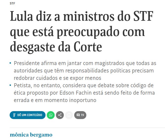 É um moralismo arcaico, diria até um preconceito de classe com os magistrados que já fizeram tanto por esse país. E qualquer um que tenha pelo menos dois neurônios sabe muito bem que fazer críticas aos suprêmicos sem ter as devidas Prerrogativas em sua defesa, é uma estupidez abusiva e lambuziva. É só lembrar do amigo do amigo do pai do Marcelo Odebrecht que deixou o nome do Mario Sabino no inquérito sem fim até hoje… Lá não houve choro e ranger de dentes da mesma imprensa amiga. A pequena montanha de evidências não teve o mesmo efeito. É, no mínimo, estranho.