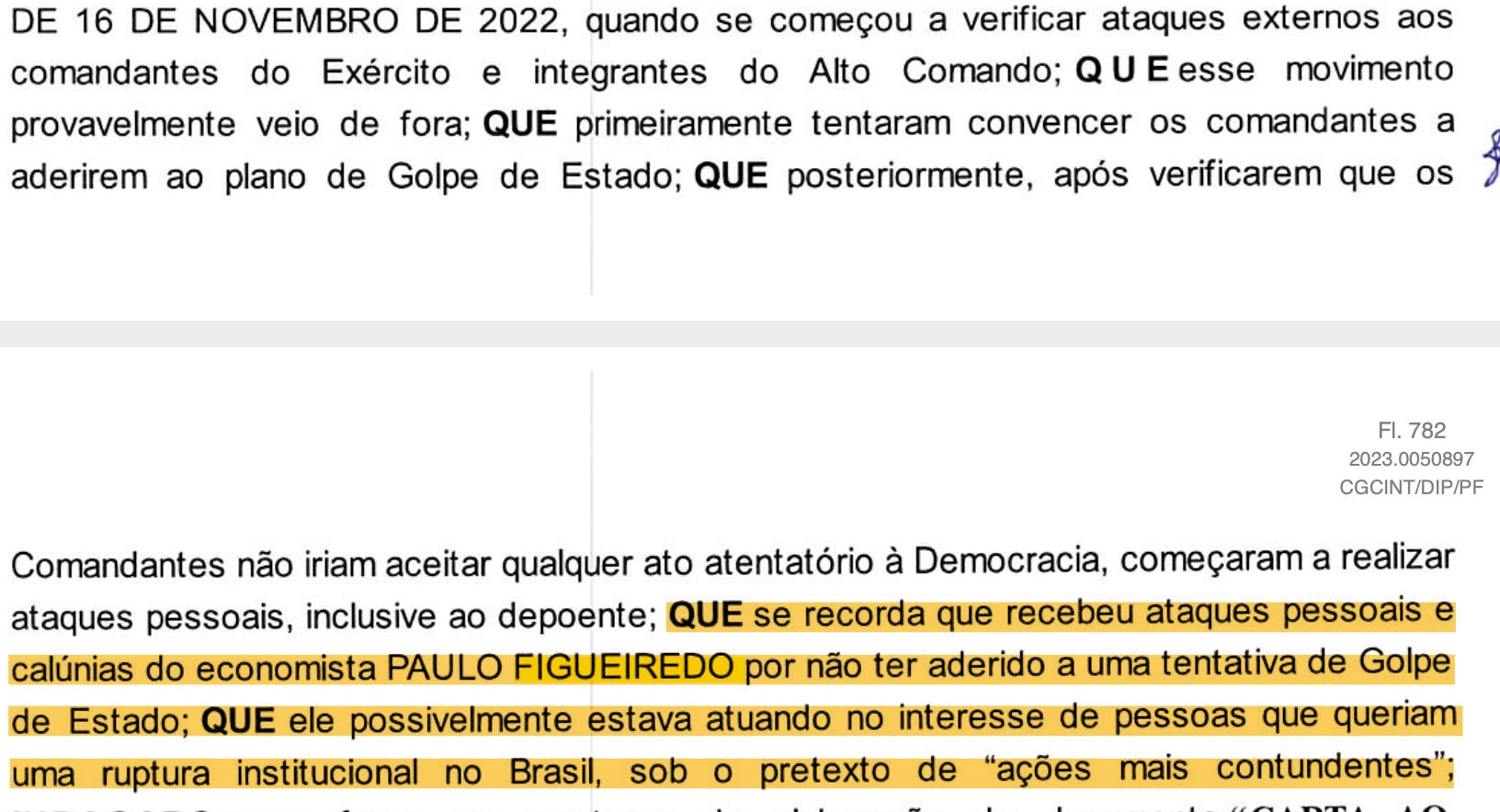 Mauro Cid também confirmou que a ideia do golpe já estava em circulação nos grupos de WhatsApp bolsonaristas. E os influencers de Miami, com tribuna cativa na Jovem Pan, estimulavam o público a pressionar os generais que não estavam dispostos a contribuir para o golpe. Freire Gomes cita nominalmente Paulo Figueiredo, neto do último ditador brasileiro.