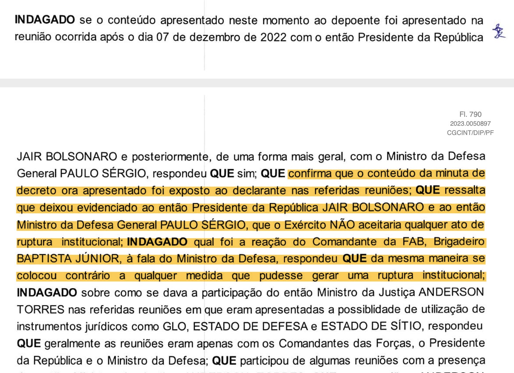 O depoimento é cheio de evasivas, mas Freire Gomes enfatizou ter deixado claro que “não aceitaria qualquer ato de ruptura institucional”, embora não tenha denunciado a movimentação bolsonarista para a tentativa de golpe.