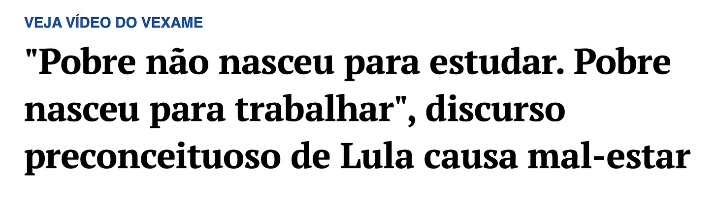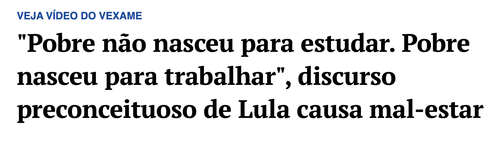 O trecho recortado faz parecer que Lula disse isso de forma séria. Só que no vídeo original a frase é sarcasmo, o presidente estava ironizando exatamente a mentalidade elitista que trata educação como herança de família.