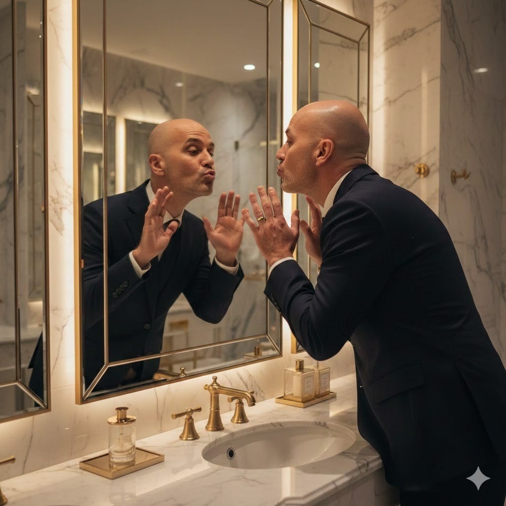 Tem a letra do Roger: “Eu me amo, eu me amo / não posso mais viver sem mim”.