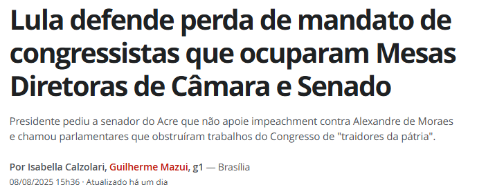 Agora, finge indignação e defende a perda de mandato para baderneiros?