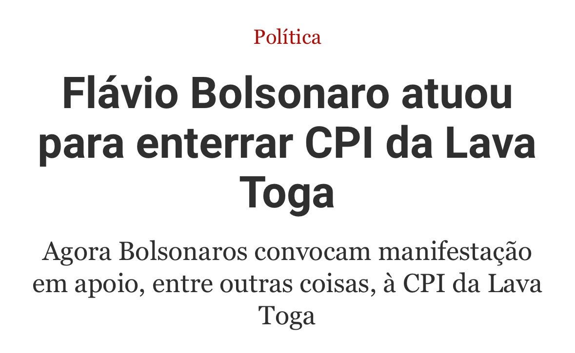 E seu irmão Flávio — pivô do entreguismo antipatriótico do pai para o sistema — tenta convencer a todos que era apenas um simples cético da CPI da Lava-Toga.