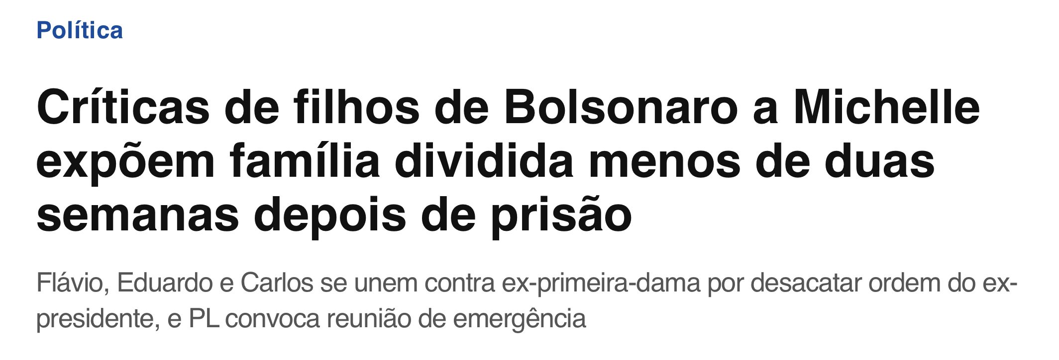 Bolsonaro, que foi eleito dizendo “Deus, Pátria e Família”, foi preso por tentar agir como um deus e conspirar contra a pátria e, ao que tudo indica, está ficando sem família também.