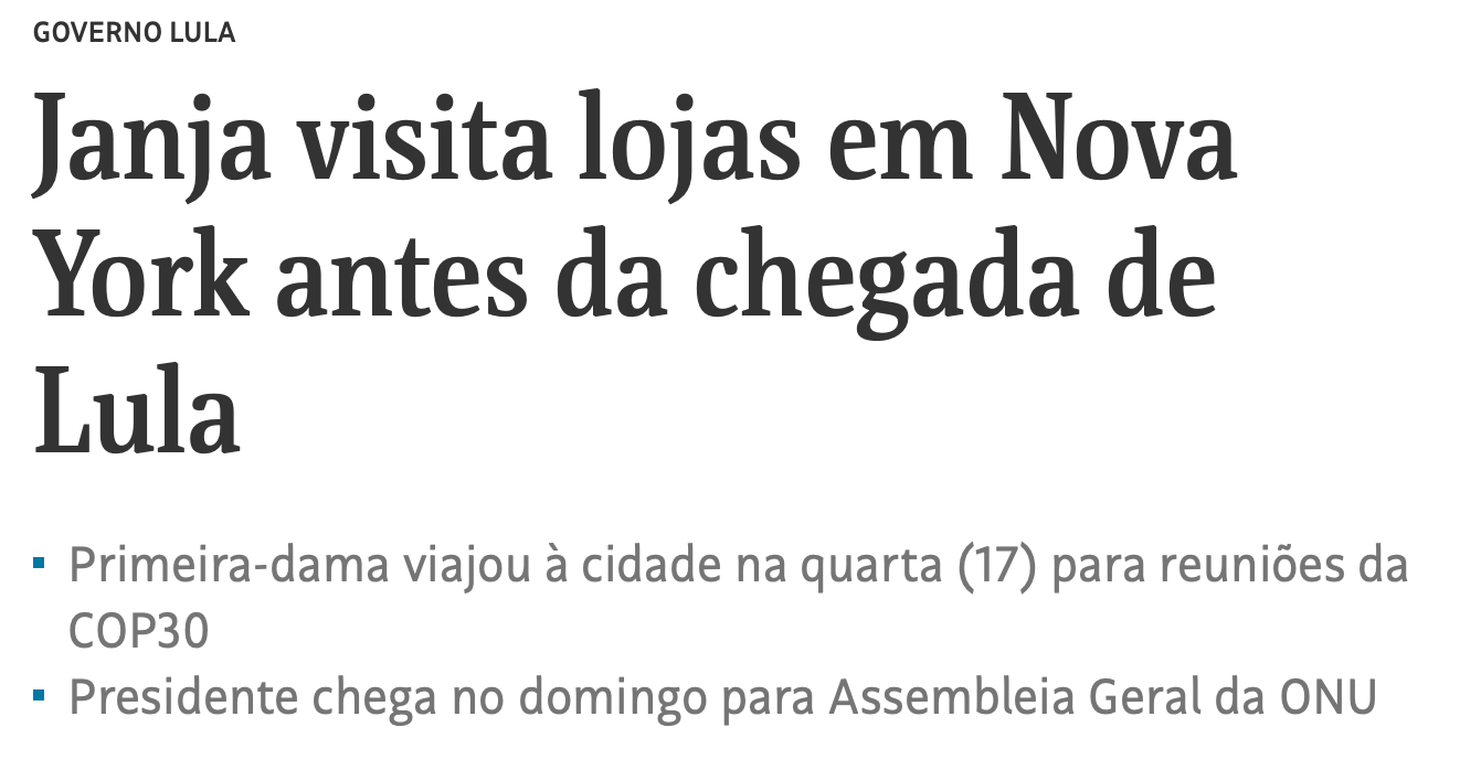 Que ninguém quer ir a Belém do Pará, entende-se. Mas Janja não perderia mais uma janjada por Nova York.