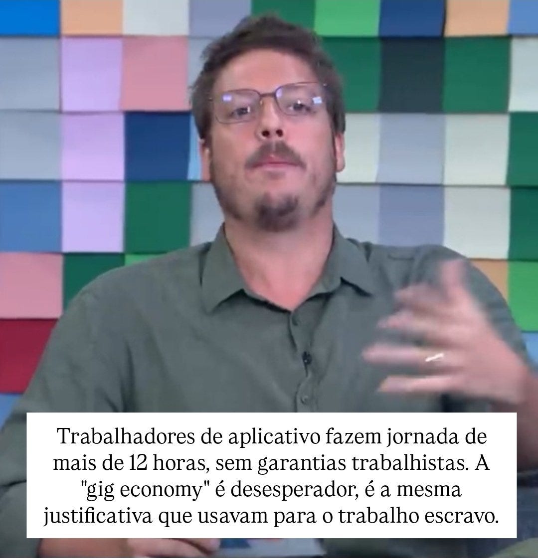 Agora ele aparece sorrindo de orelha a orelha nas propagandas, pedindo o seu lanche no mesmo aplicativo que ele jurava ser a senzala do século XXI.