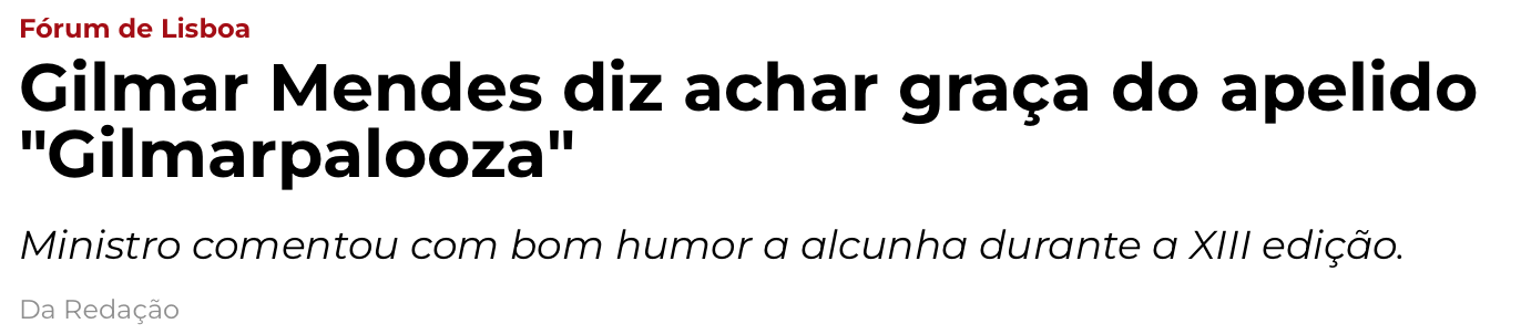 Depois do Gilmarpalooza, a nossa eterna capacidade de passar vergonha vai ter de lidar com mais uma abominação gilmarzista