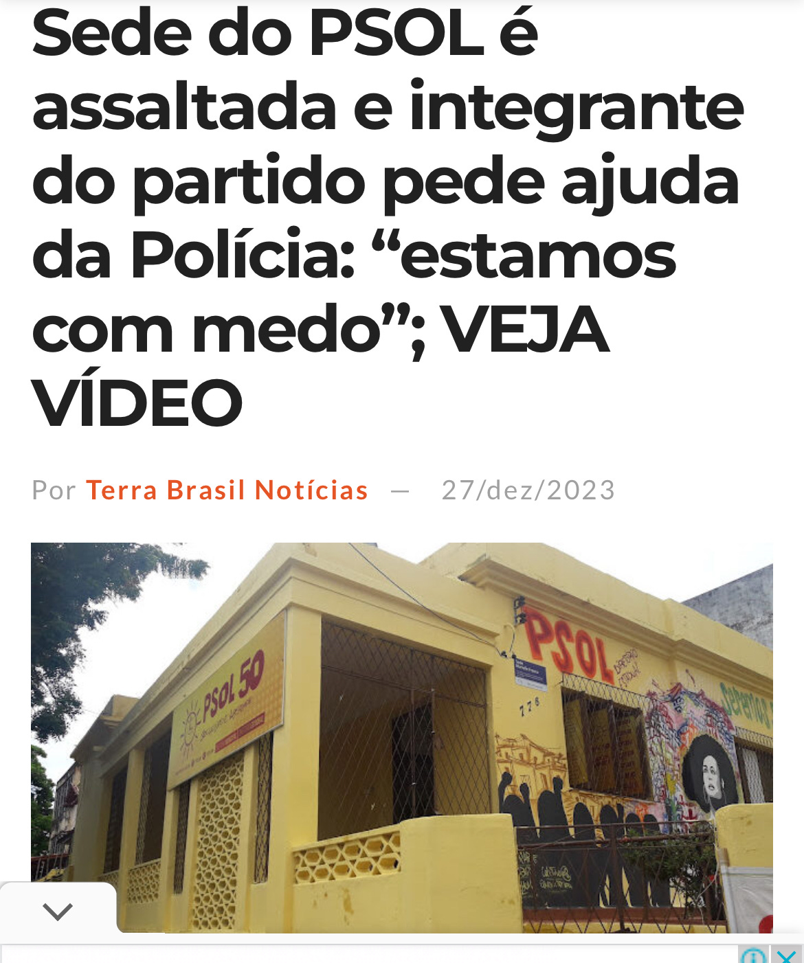 Uma vítima da sociedade entrou na sede do Psol hoje para socializar os bens do partido com pessoas menos favorecidas, no caso eles próprios. O Psol então ligou para o disk-fascismo numa tentativa de impedir que tal justiça social ocorresse.
