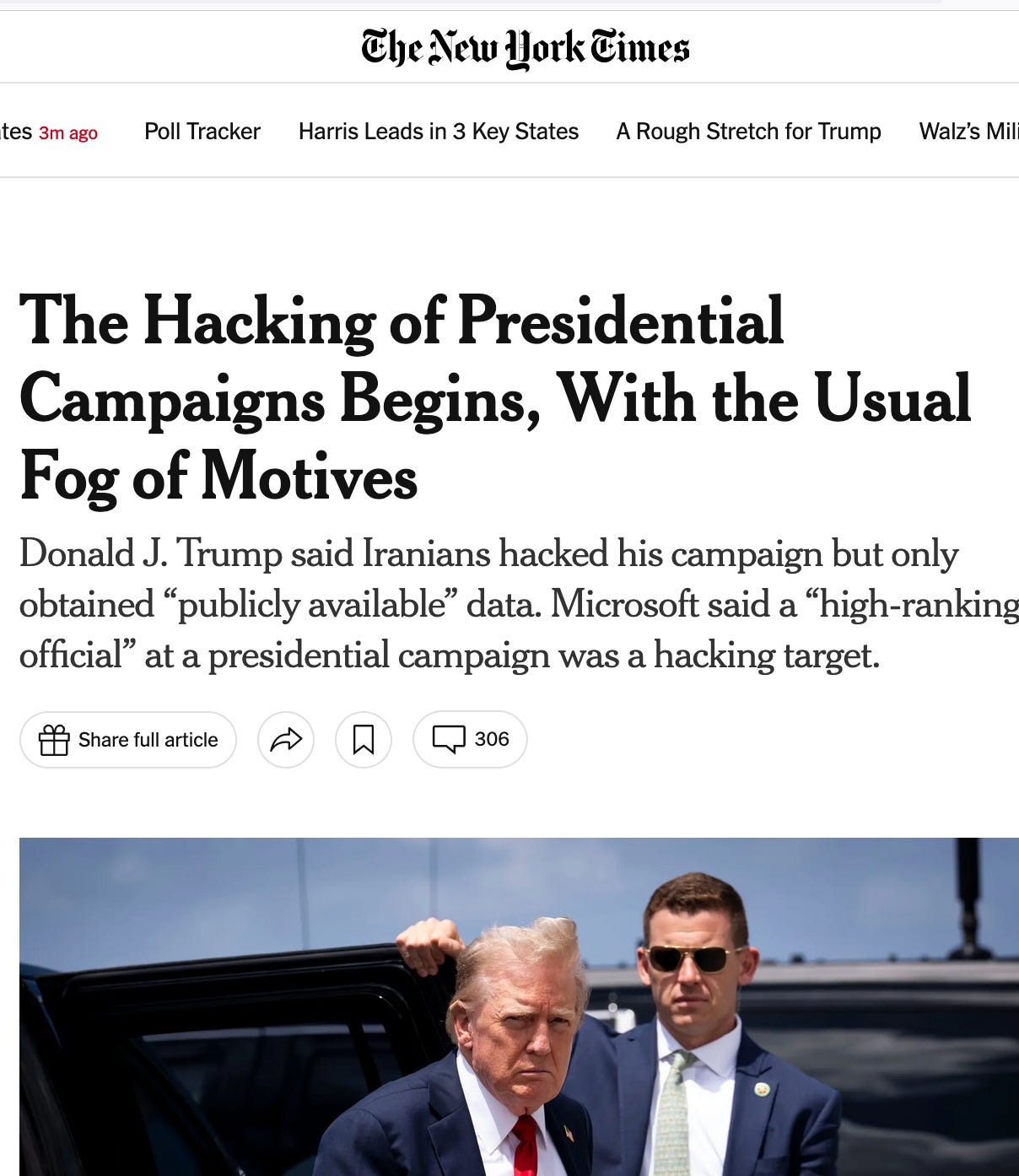 Hoje o New York Times confirmou que os iranianos andaram vasculhando as lixeiras digitais do velho Donald.