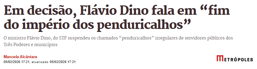 Todo mundo sabe que o Judiciário é que detém o título inconteste de “império dos penduricalhos”. O salário da classe é mensalmente anabolizado por uma engenharia criativa de auxílios e indenizações que vão da creche ao panetone, passando pelo famigerado auxílio iPhone. Mas eis que, subitamente, segundo a imprensa, Dino decidiu moralizar a farra.