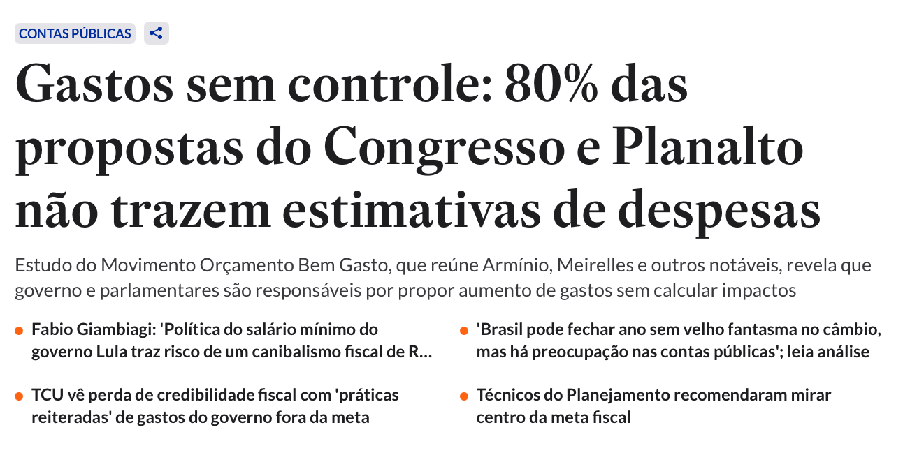Segundo o Tribunal de Contas da União — essa figura meio fantasmagórica que aparece de vez em quando como uma tia chata em festa de Natal —, em 2024, 80% das propostas que brotaram entre o Congresso e o Planalto não trouxeram nenhuma estimativa de despesas. Foi na base do chute, da adivinhação, do “depois a gente vê”.