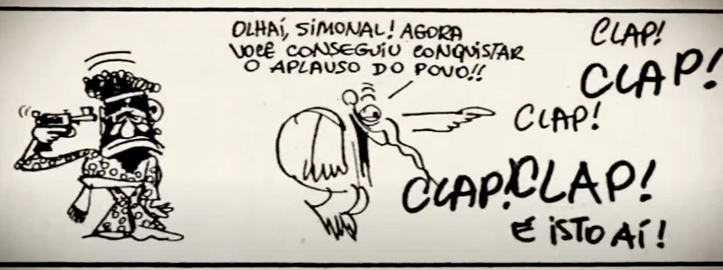 Esse mesmo documentário, talvez o melhor documentário brasileiro que eu já vi, mostra bem isso: Jaguar e Ziraldo sabiam que Simonal não tinha ligação com a repressão.