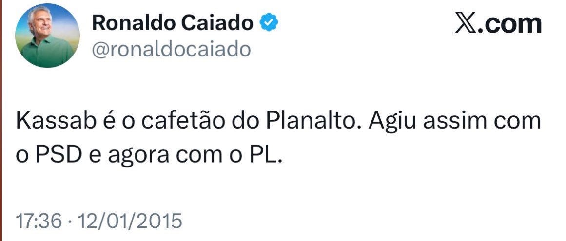 No Brasil, o poder não tem lado, tem dono. Agora, Caiado está no balcão de Kassab