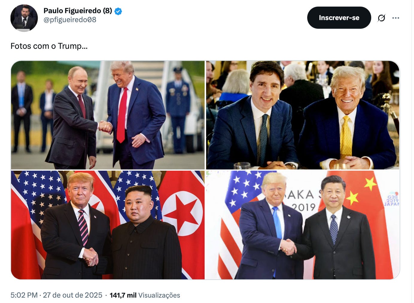 Mas agora a conversa é outra; Trump recebe de todo mundo, até Lula. Menos o Paulo Presunto e o Dudu Bananinha.