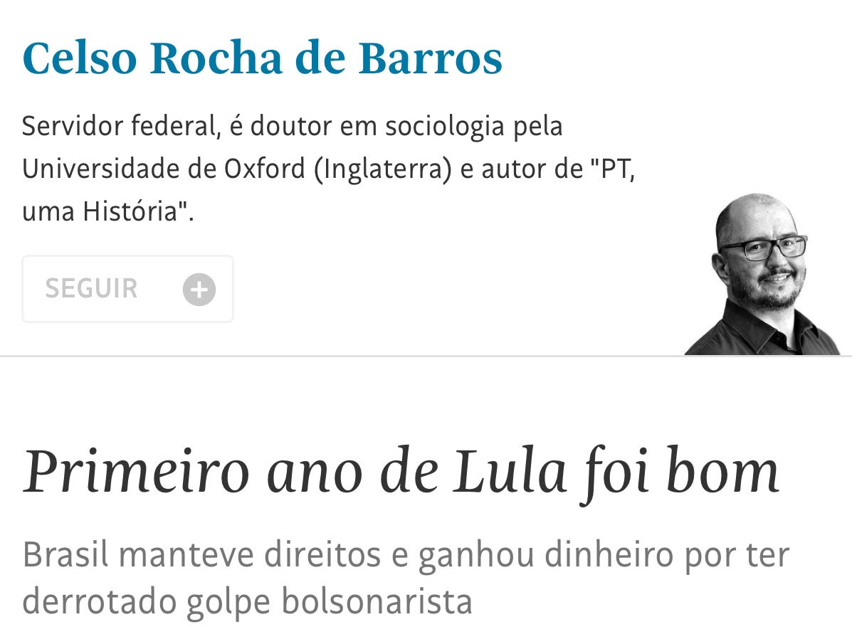 #lulaéomelhorO colunismo chapa-branca se exaltaDiogo Mainardidez 17, 2023∙ Pago11863CompartilharSegundo o colunista da Folha de S. Paulo, o “primeiro ano de Lula foi bom”.Só isso?Esta publicação é para assinantes pagos.Inscreva-seJá é um assinante pago? EntrarAnteriorPróximo