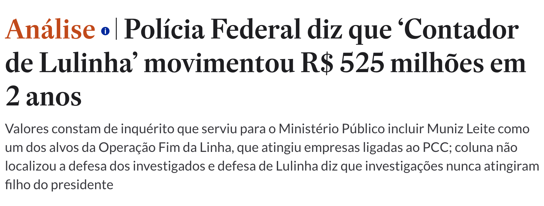 A PF interceptou diálogos do Careca mandando um funcionário fazer depósitos na conta da empresa de Roberta Luchsinger, amiga de Lulinha e alvo da última fase da Operação Sem Desconto. Os valores das transferências somam R$ 1,5 milhão, e o Careca deixa claro que o dinheiro era para o “o filho do rapaz”.