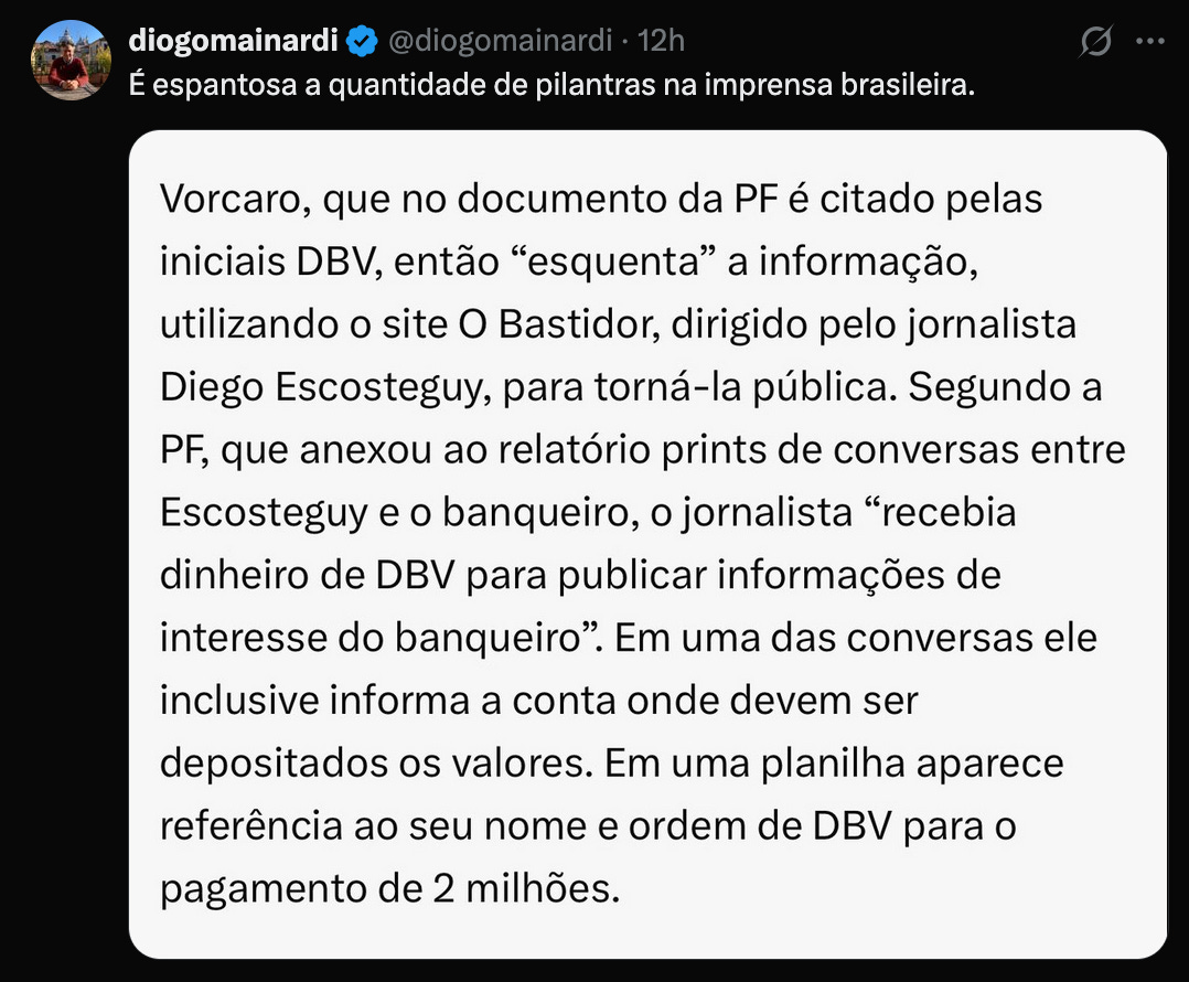 E nada mudou. Daniel Vorcaro comprava jornalistas e influenciadores (cuja diferença é quase nenhuma) no varejo.