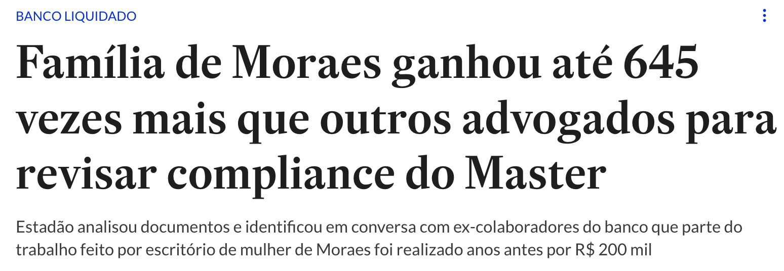 O Estadão retornou ao caso do contrato da mulher do supremíssimo Morais.