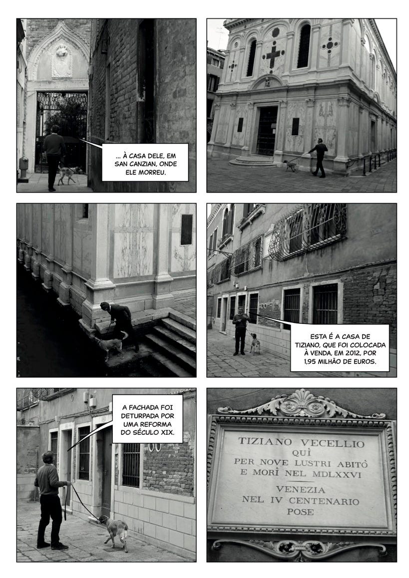 Eu, Diogo, perambulo por Veneza, seguindo o rastro de Tiziano, acompanhado por meu cachorro e fotografado por meu filho Nico