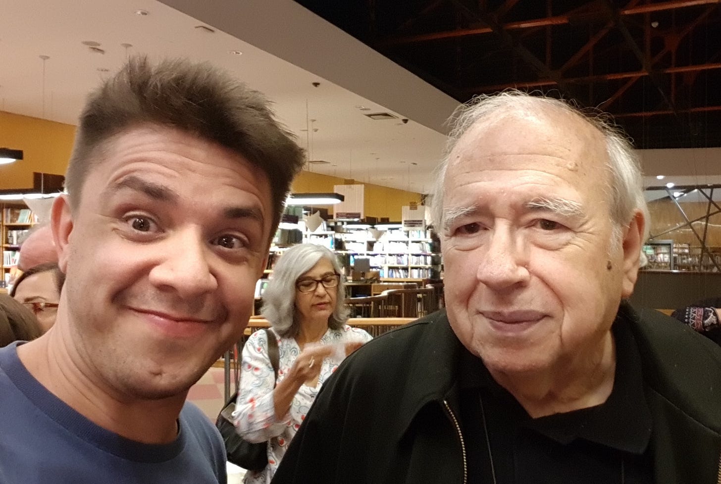 Aí chegou 2018. Num evento na Livraria Cultura, vi o cara que me fez gostar de ler ali, paradinho, sem ninguém em volta, só a esposa. Pensei: