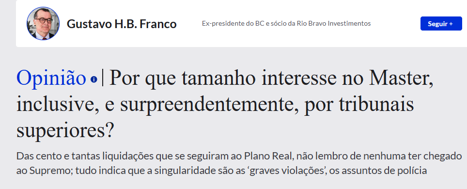 Gustavo Franco, ex-presidente do Banco Central, explica que o Master não representa um risco sistêmico ao setor financeiro nem gera prejuízos diretos aos cofres públicos.