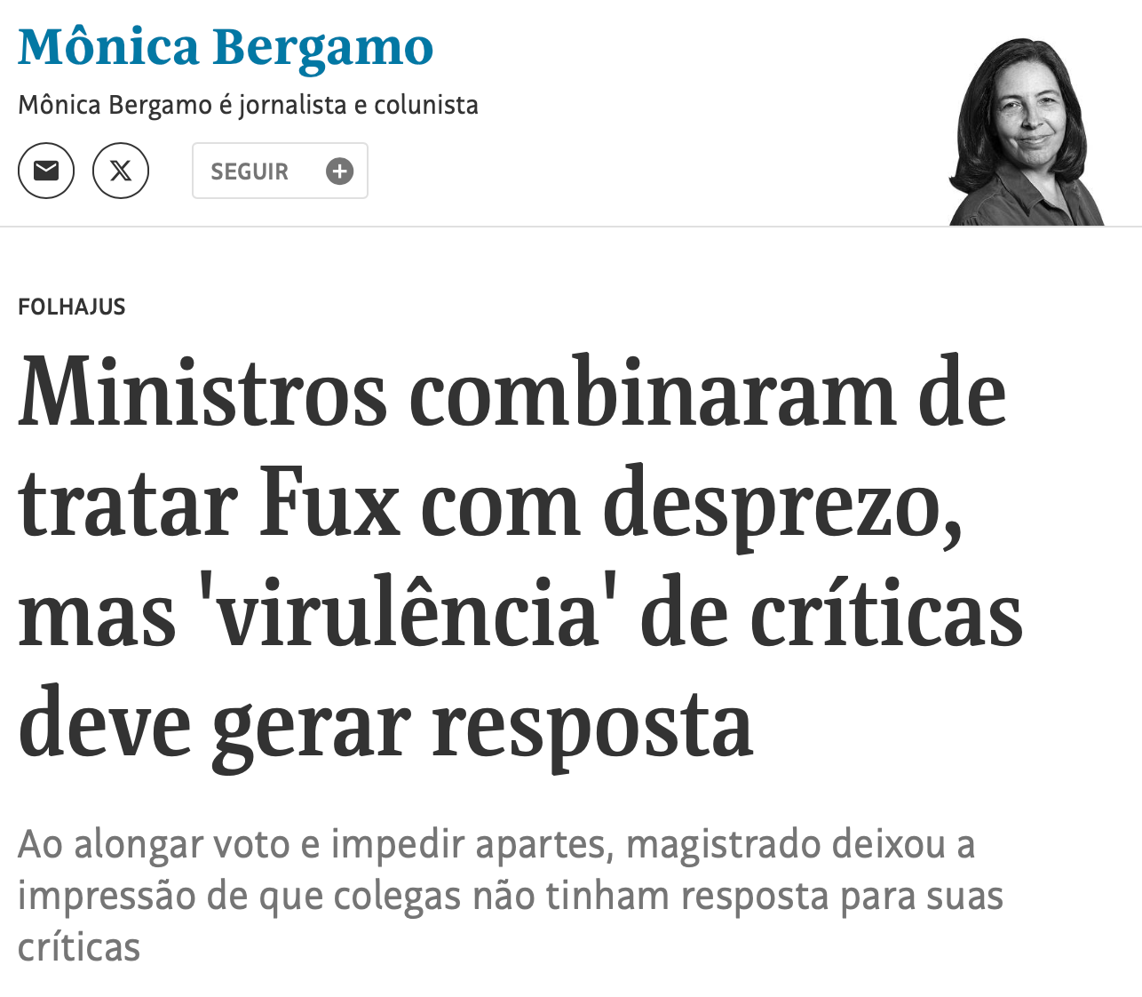 Mas o voto de Fux constrangeu os supremíssimos supremos. E para a imprensa, é normal que agora ele seja tratado com “desprezo”.