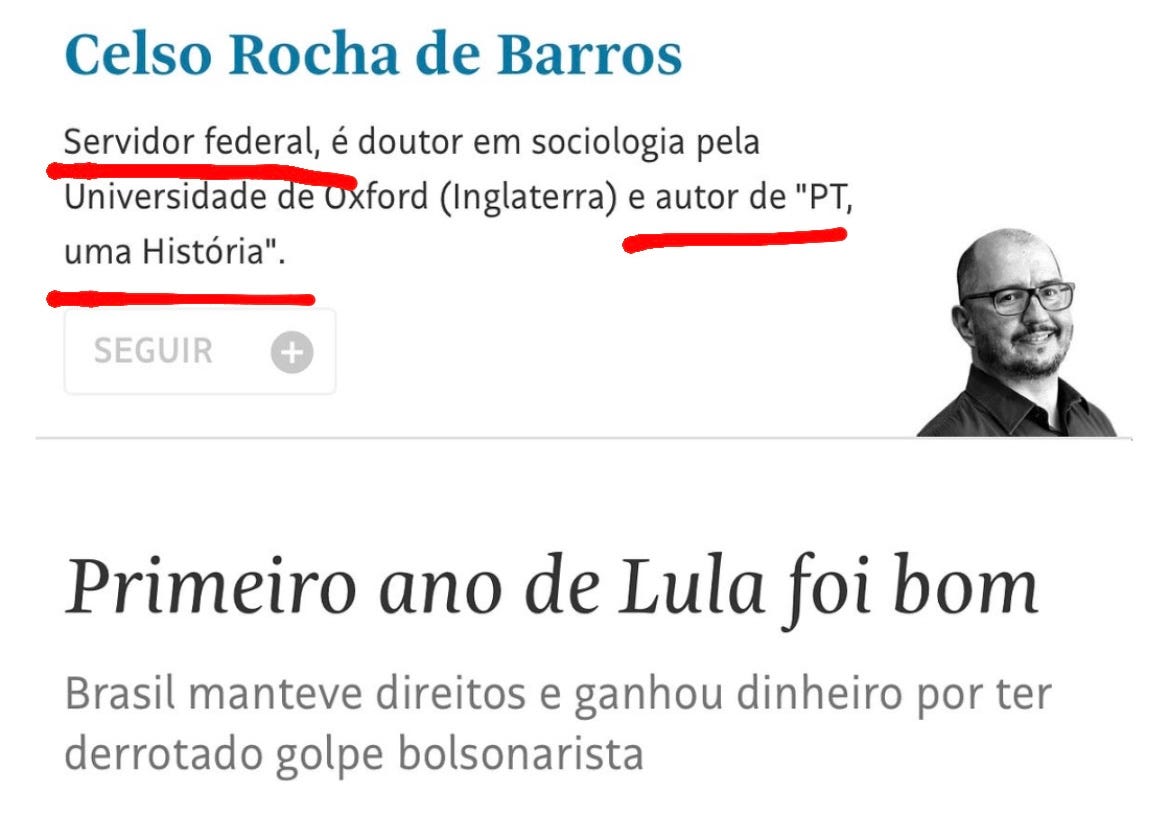 Problemático pra mim é o jornal apresentar o colunista com o título de Doutor em Sociologia pela Universidade de Oxford , talvez como argumento de autoridade para legitimar o viés do texto.