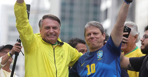Tarcísio já subiu no caminhão de Bolsonaro com a camisa azul da seleção, como se fosse um símbolo dissociativo. Já deu declarações apaziguadoras com o STF e até subiu no palanque com Lula para anunciar parcerias com o Governo Federal.