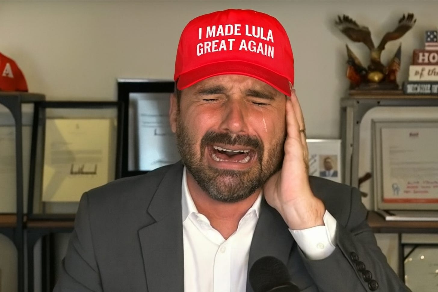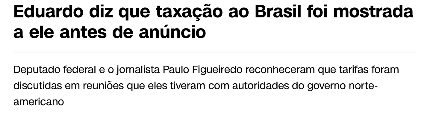 Mais tarde, o gênio resolveu se apropriar da fala de Trump sobre taxar o Brasil, como se tivesse linha direta com a Casa Branca e fosse o grande articulador das sanções — tipo um “assessor informal” do Trump.