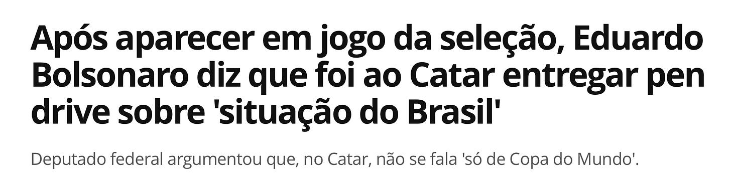 Depois, quando foi flagrado curtindo a Copa do Mundo com dinheiro público, apareceu com uma desculpa digna de esquete do Zorra Total: “fui lá entregar pen drives pra um sheik salvar o Brasil”.