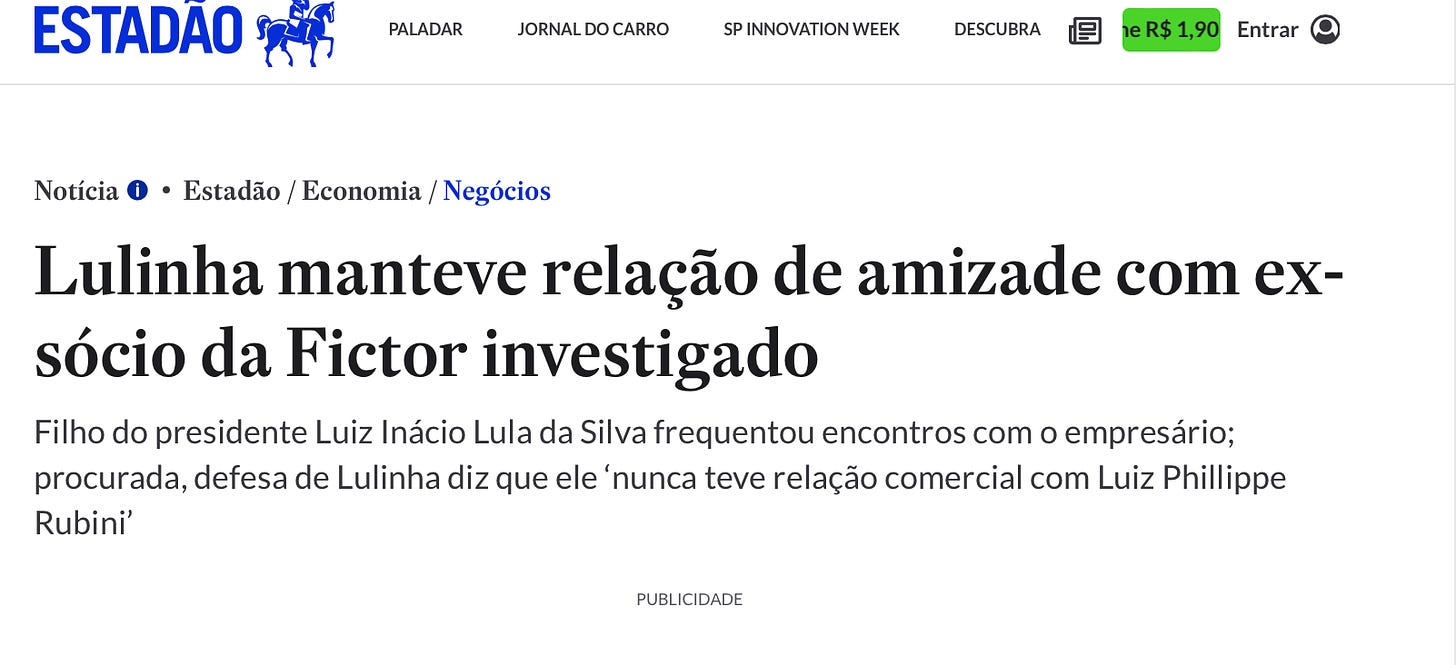 A Fictor tá envolvida no escândalo do Banco Master. Sim, é um escândalo entrando no outro. Os amigos de Lulinha também são amigos dos amigos de Vorcaro.