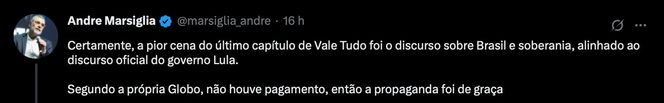 Não perdeu apenas qualidade, mas também a dignidade. Uma das cenas finais da novela Vale Tudo, um remake que nem deveria ter sido feito, “plagiou” a propaganda do governo Lula, como apontou o advogado André Marsiglia.