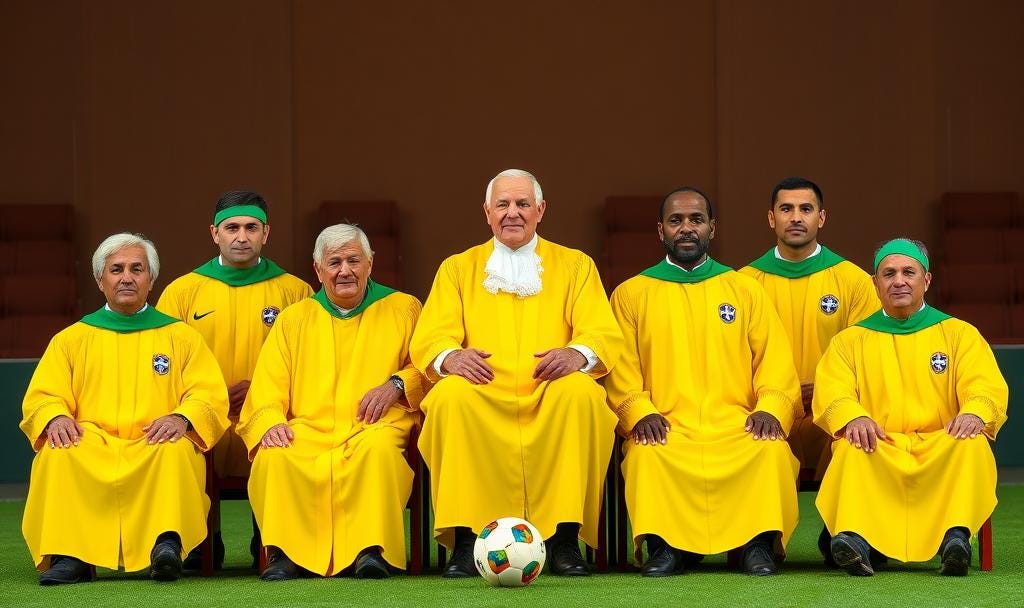 De lá para cá, sabemos a escalação dos onze ministros do STF de cor, mas não sabemos a escalação dos onze jogadores da seleção brasileira. Pode fazer o teste com você mesmo.