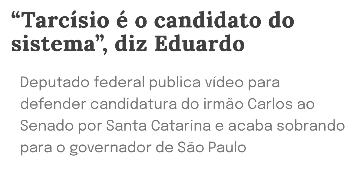 “Eduardo Bolsonaro, entendo seu sentindo. Você espera obediência cega, mas quando seu pai cogitou lançar o Tarcísio, você também discordou. Então por que você pode se rebelar e os outros não? Quer lealdade ou servidão?”