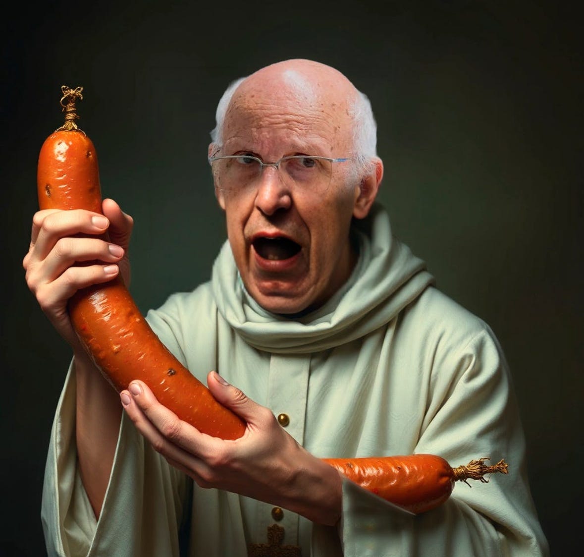 Chora na linguiça, padre.