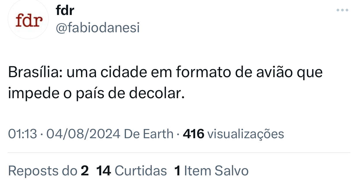Na sua conta na bodega do Elon, Fabio Danesi Rossi (FDR) resume o que acontece no Brasil há mais de sessenta anos: