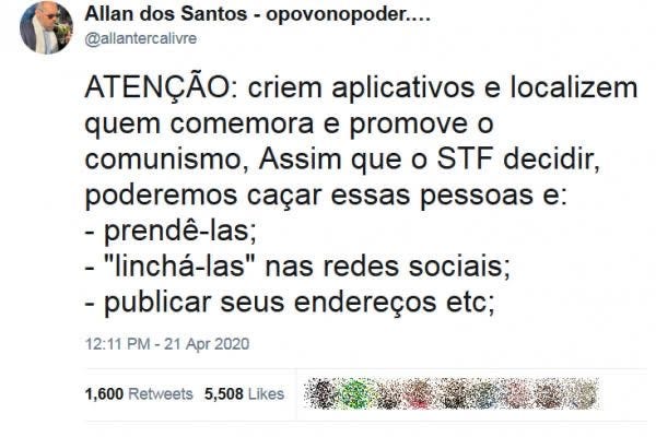 Tudo que Allan reclama de Xandão, ele fez: perseguiu, difamou, encabeçou linchamentos e executou quem conseguiu.