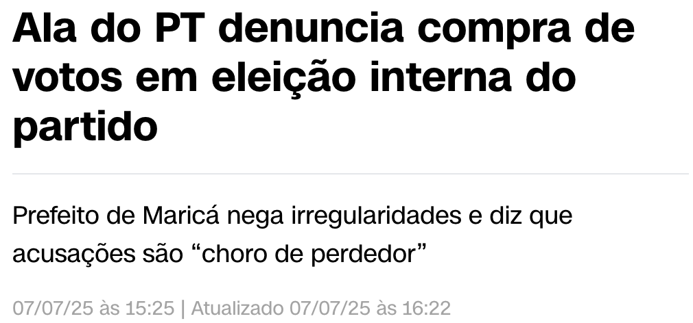 Segundo uma ala do PT — sempre há uma “ala”, como nas penitenciárias —, a eleição interna da sigla foi marcada por compra de votos.