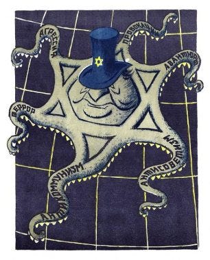 O interessado pelo assunto pode se aprofundar nas obras de Gennadi Kostyrchenko e Arkady Vaksberg (ambos russos e especialistas no antissemitismo de estado comunista desde os tempos stalinistas) Izabella Tabarovsky (pesquisadora russo-americana e a mais focada na Sionologia em si), Robert S. Wistrich e Yohanan Manor, sem deixar de citar o clássico Léon Poliakov (que foi a fonte onde bebi em 2006), todos infelizmente ainda sem tradução para o português. Mas a história da Sionologia Soviética eu já contei há 20 anos e não há necessidade de repeti-la aqui. O que eu quero é salientar que toda aquela retórica nascida nos anos 60 e espalhada laboriosamente por intelectuais de esquerda adestrados pela propaganda soviética, sobreviveu à própria existência da URSS, fincou raízes na Academia e na Mídia, e hoje é o corpo e a alma dos discursos não só da esquerda, mas também das franjas direitistas que vêm se multiplicando sobre a plataforma do antissemitismo, como os groyppers de Nick Fuentes ou a Quarta Teoria Política de Aleksandr Dugin (não por acaso filho de um alto oficial da KGB).