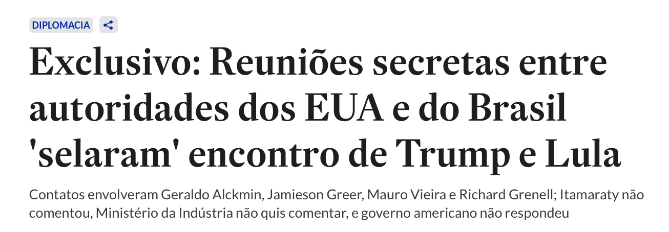 O Estadão aposta em reuniões secretas do Geraldo Alckmin com representantes da Casa Branca.