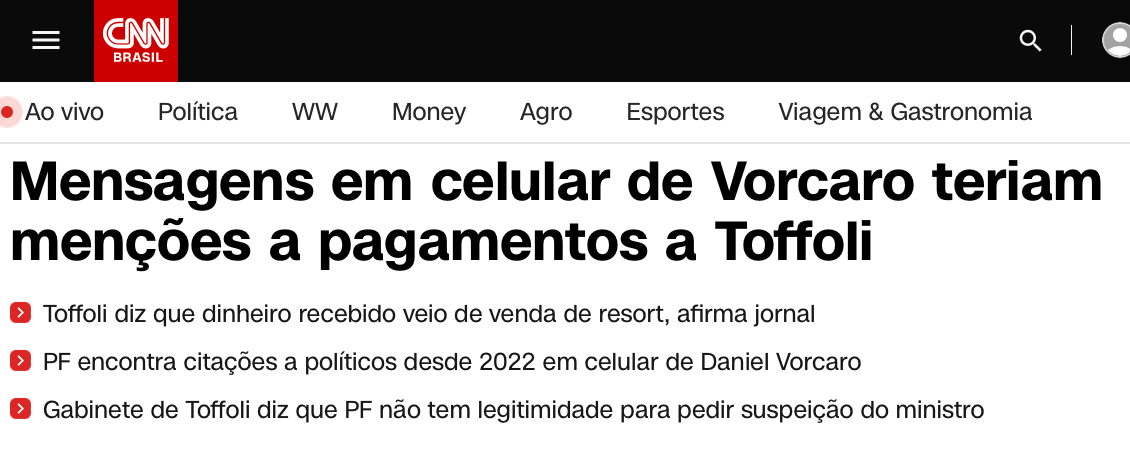 A Polícia Federal encontrou mensagens comprometedoras no celular de Vorcaro, mencionando pagamentos ligados ao ministro Toffoli.
