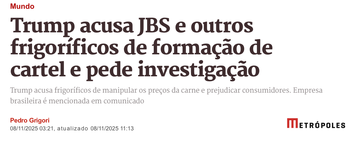 Na sua rede social, Trump disse que os frigoríficos ligados à empresa brasileira estavam em “conluio ilícito, fixando e manipulando preços”.
