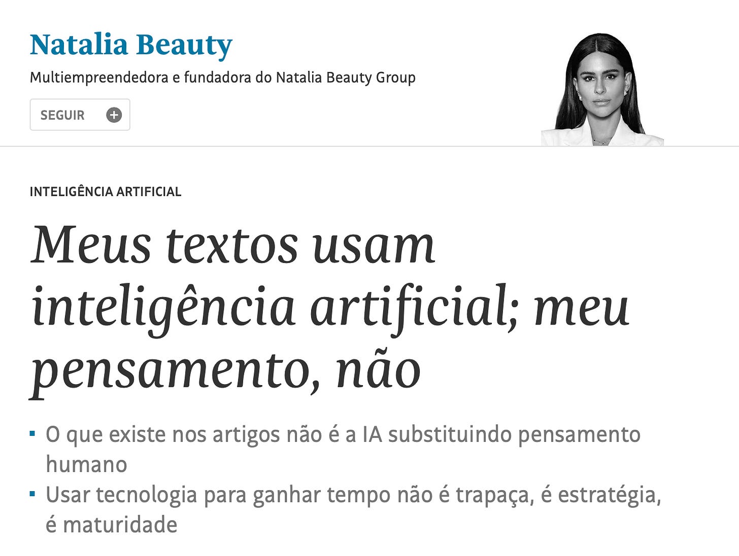 Natália Beauty, colunista da Folha, chocou a burguesia ao confessar que usa a IA para escrever “seus pensamentos”.